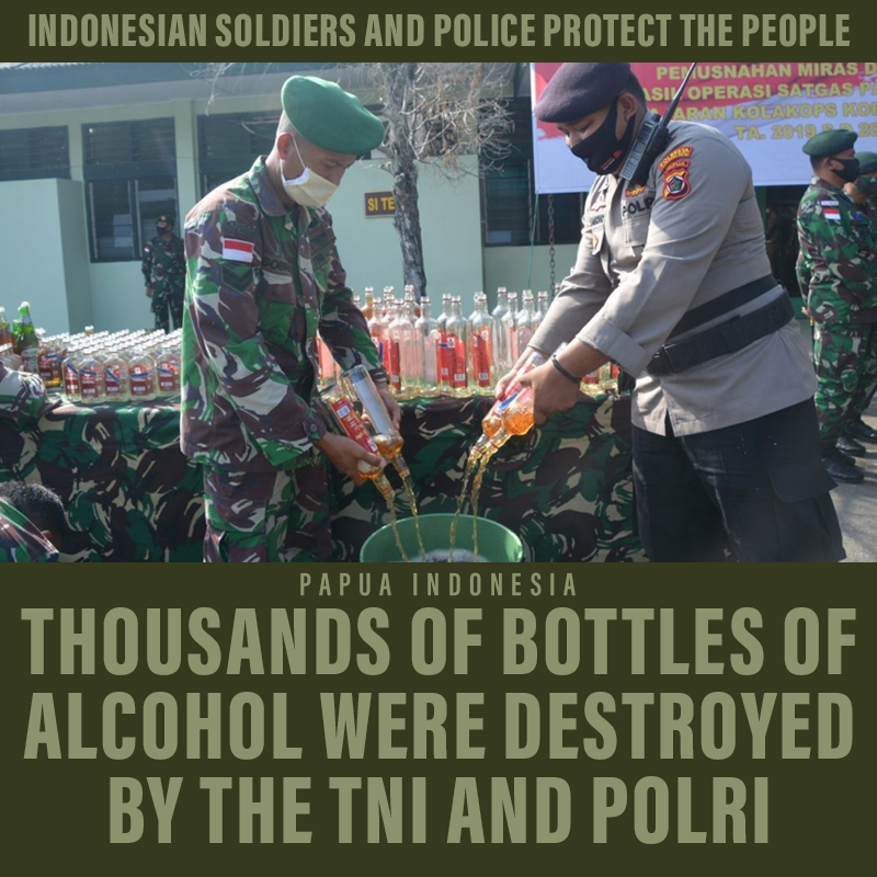 Commander of the 172 / PWY Military Resort Command as the Commander of the 172 / PWY Korem Operations along with all stakeholders in Jayapura City destroyed thousands of bottles of illegal liquor and smuggled marijuana obtained by the RI-PNG Border Security Task Force during their duties in 2019 until 2020.